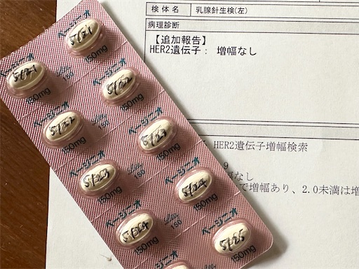 で、今後の治療の方向性が決まる最後の検査結果、HER2受容体ですが、陰性。